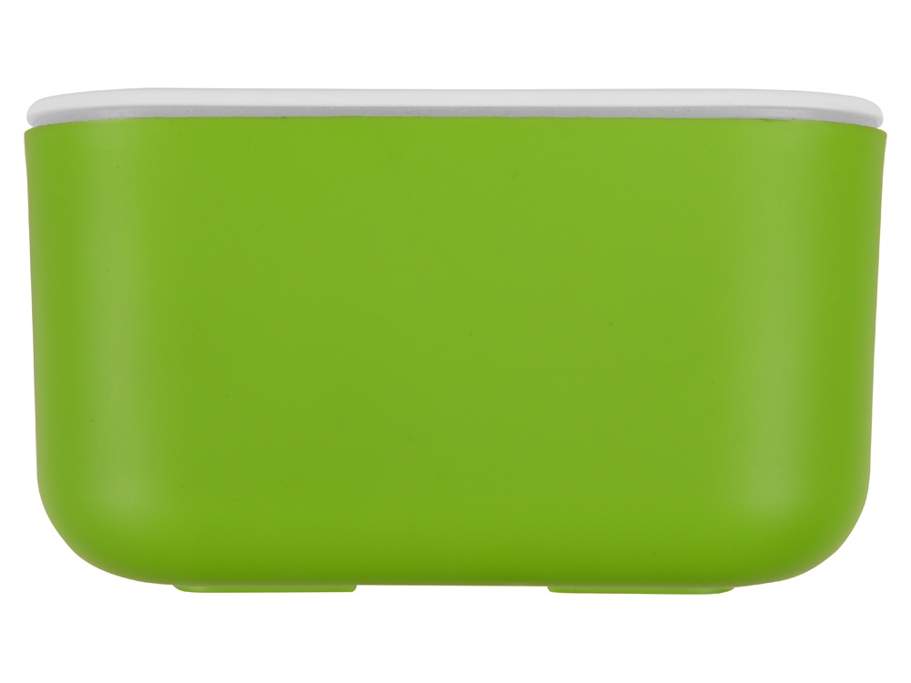 Ланч-бокс Neo можно брать с собой на работу, в школу, университет и командировки. Внутри прочной пластиковой емкости находятся снимаемая перегородка и вилка. Крышка с клапаном препятствует выпадению продуктов из бокса. Чтобы облегчить открытие контейнера, сначала выпустите воздух из него, потянув за силиконовый клапан на крышке. Деталь для фиксации крышки контейнера выполняет дополнительную функцию подставки для телефона, что особенно понравится тем, кто привык смотреть видео или читать книги во время перекуса. Ланч-бокс Neo можно разогревать в микроволновой печи, предварительно сняв крышку контейнера. Также разрешается использовать в посудомоечной машине и морозильной камере.