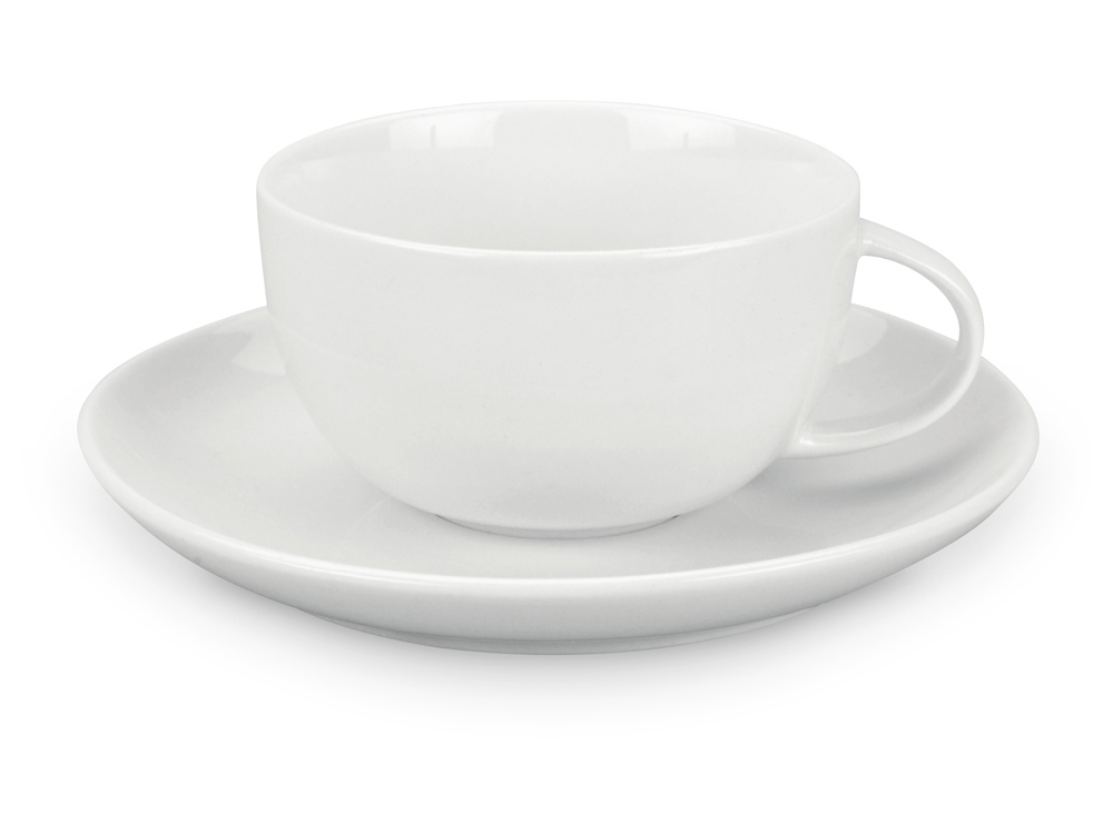 Фарфоровая чайная пара состоит из чашки с удобной ручкой и блюдца, которые одинаково уместно будут выглядеть и в офисе, и дома. Объем кружки — наиболее популярный и востребованный, 210 мл. Оба элемента пары можно брендировать.