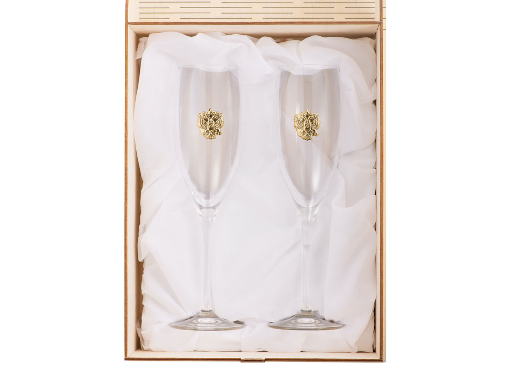 Набор бокалов для шампанского. Благородное флорентийское стекло прекрасно смотрится с российским гербом. Именно так итальянцы решили выразить свою любовь к России.