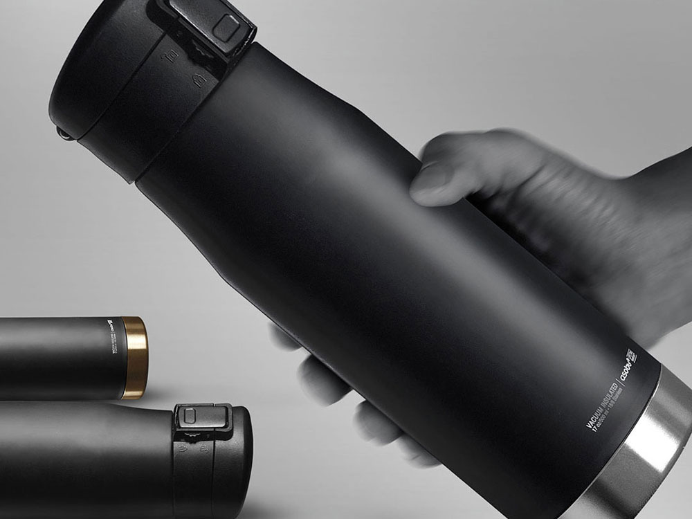 Матовый черный термос с блестящей отделкой дна. Герметичная крышка с откидным механизмом, кнопкой открывания и блокировкой от случайного нажатия защищают термос от проливания, благодаря чему содержимое вашей сумки всегда будет в безопасности с Liberty Canteen. Широкое горлышко позволяет удобно насыпать в термос лед и мыть внутреннюю колбу.