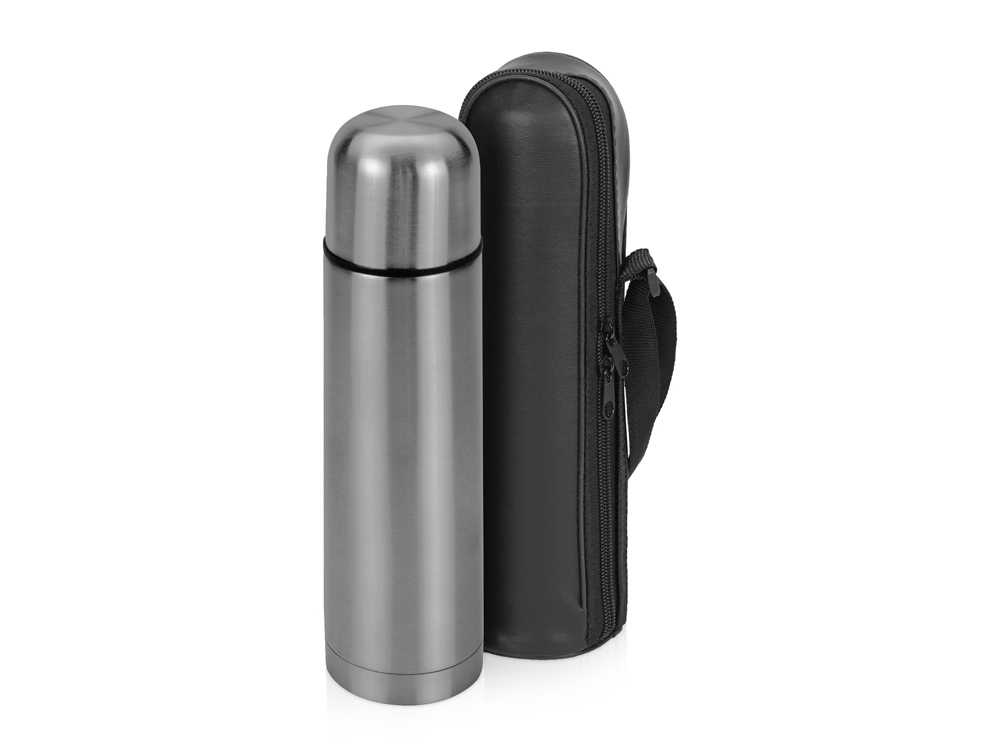 Термос - один из универсальных видов подарков, который уж точно не будет пылиться на полке. Термос на 500 мл имеет компактные размеры, его удобно носить в сумке или брать с собой в автомобиль и он сохранит ваши напитки горячими 24 часа. На глянцевой металлической поверхности прекрасно будет смотреться лазерная гравировка. Термос идет в комплекте с дорожным чехлом.