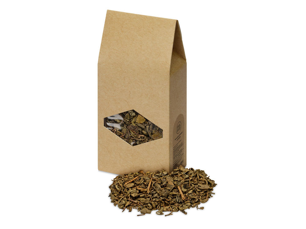 Чай зеленый байховый. Классический зеленый чай с терпким вкусом и насыщенным ароматом. Чай упакован в крафт - коробку с широкой возможностью персонализации. Отличный подарок для ценителя зеленого чая.