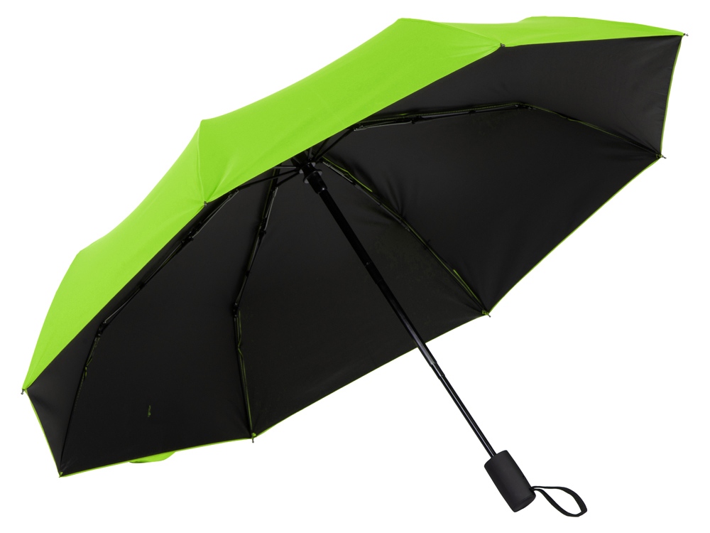 Особенностью этого зонта-автомата является двухцветный купол повышенной плотности и прочности. Под таким зонтом не страшен никакой дождь, даже с порывами ветра. На ремешок-застежку на липучке шириной 3 см можно нанести логотип. Эластичный шнурок на ручке служит для дополнительного удобства при хранении.