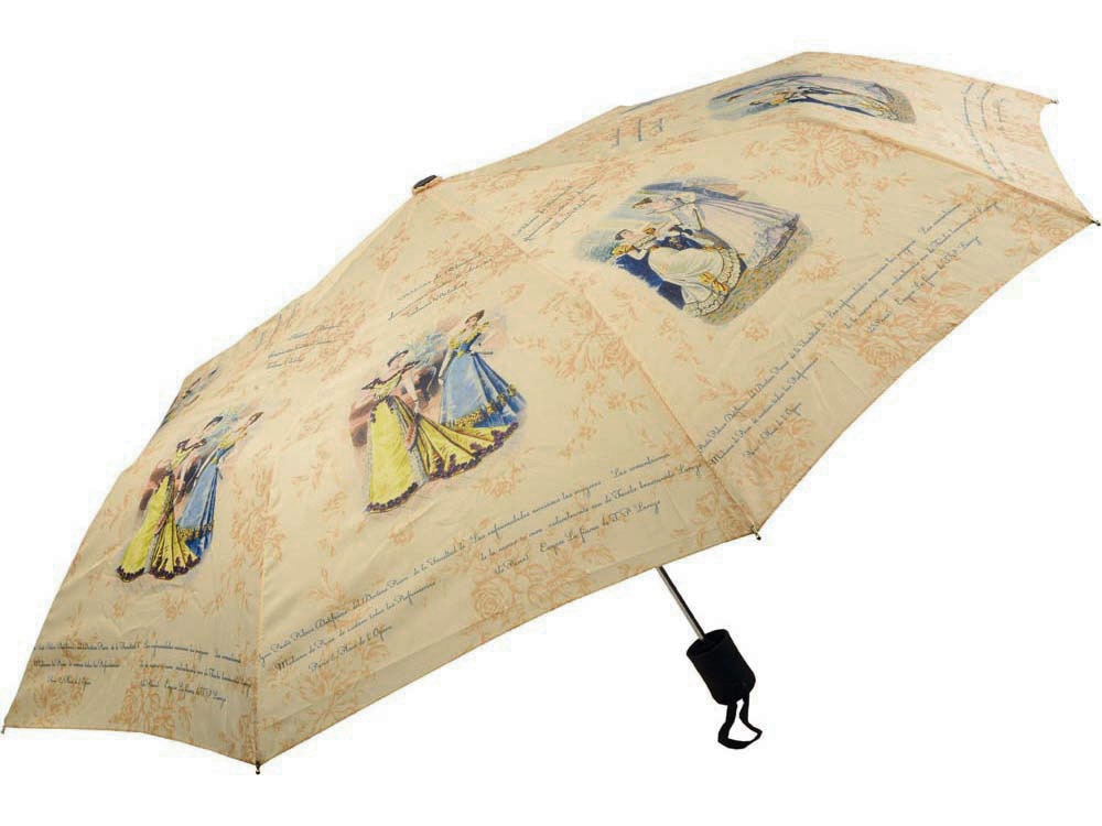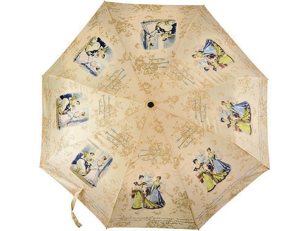 Оригинальный зонт оснащен полуавтоматическим механизмом. Купол зонта выполнен в нежных, приглушенных оттенках и задекорирован интересным принтом. Зонт удобно складывается в специальный чехол и хорошо защищает от дождя.