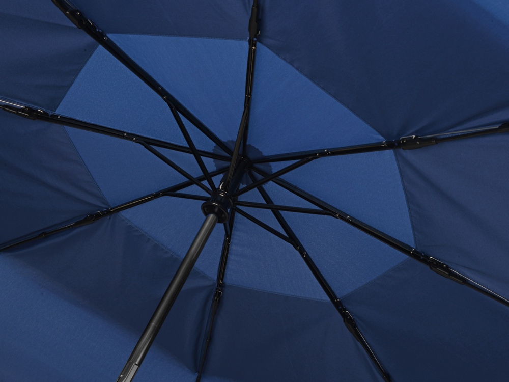 Купол этого складного зонта-автомата состоит из двух полотен и имеет большой диаметр 127 см. Прочный каркас и спицы из стекловолокна устоят при порывах ветра. Благодаря этому зонт служит надежным укрытием в самый сильный дождь. Закрывается в 3 сложения. Ручка обработана мягким покрытием soft-touch. Широкий хлястик для удобства персонализации.