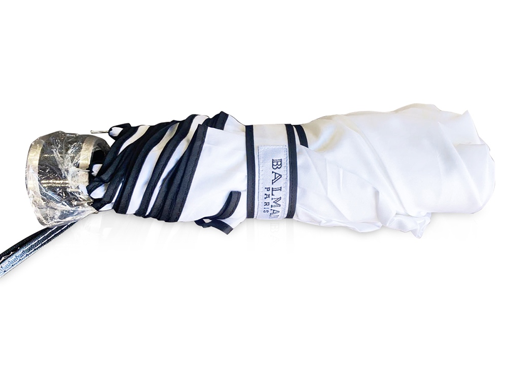 На хлястике зонта и чехле нашивка с логотипом Balmain.