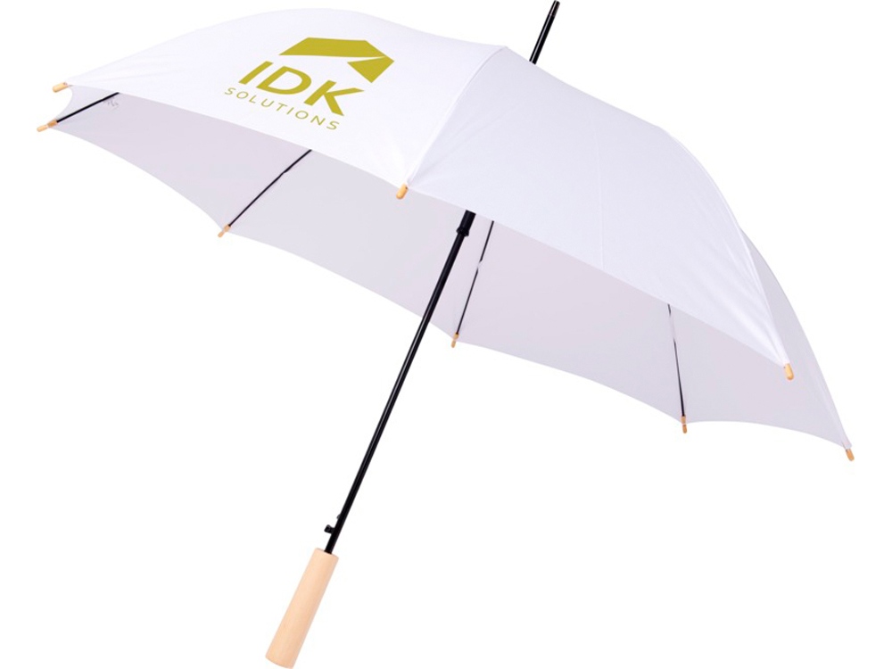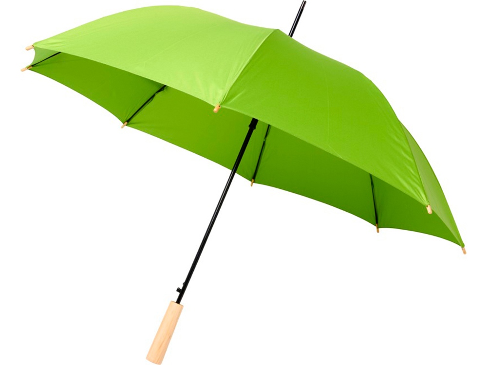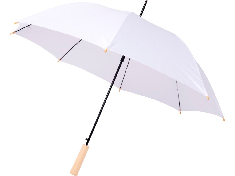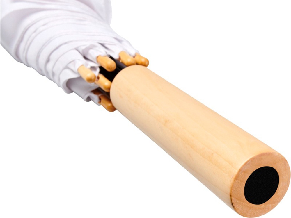 Полуавтоматический зонт с куполом из эпонж полиэстера и переработанного ПЭТ-пластика. Прочный металлический стержень, высококачественная рама со спицами из стекловолокна, обеспечивающая гибкость в ветреную погоду. Сочетание деревянной ручки, кончиков спиц и купола из эпонж полиэстера и переработанного ПЭТ-пластика обеспечивает надежность зонта.