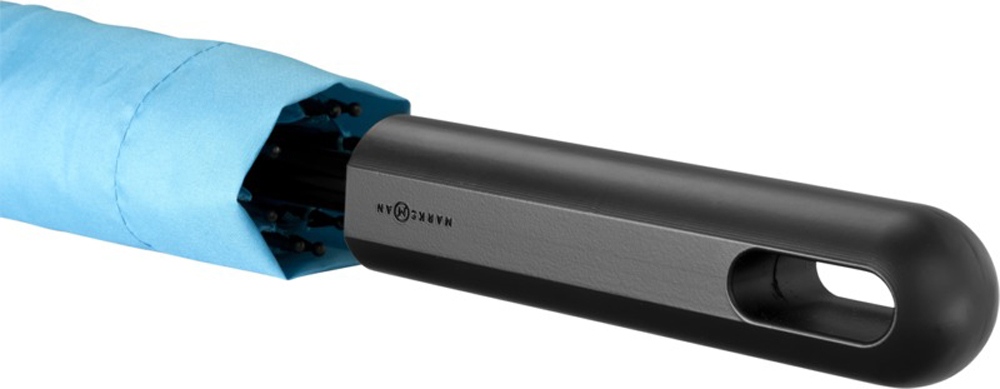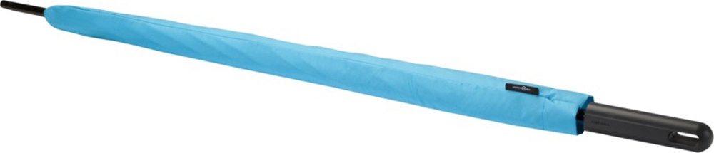 Эксклюзивный зонт с металлической тростью, стекловолоконными спицами, пластиковой прорезиненной ручкой. Предлагается в чехле под цвет зонта. Полиэстер Эпонж.