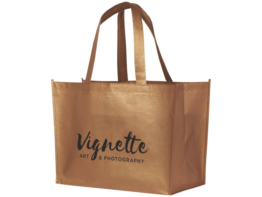 Ламинированная сумка-шоппер Alloy. Легкая, гибкая ламинированная, блестящая сумка-шоппер. Сделана из ламинированного нетканого полипропилена (80 г). Высота ручек 24 см.