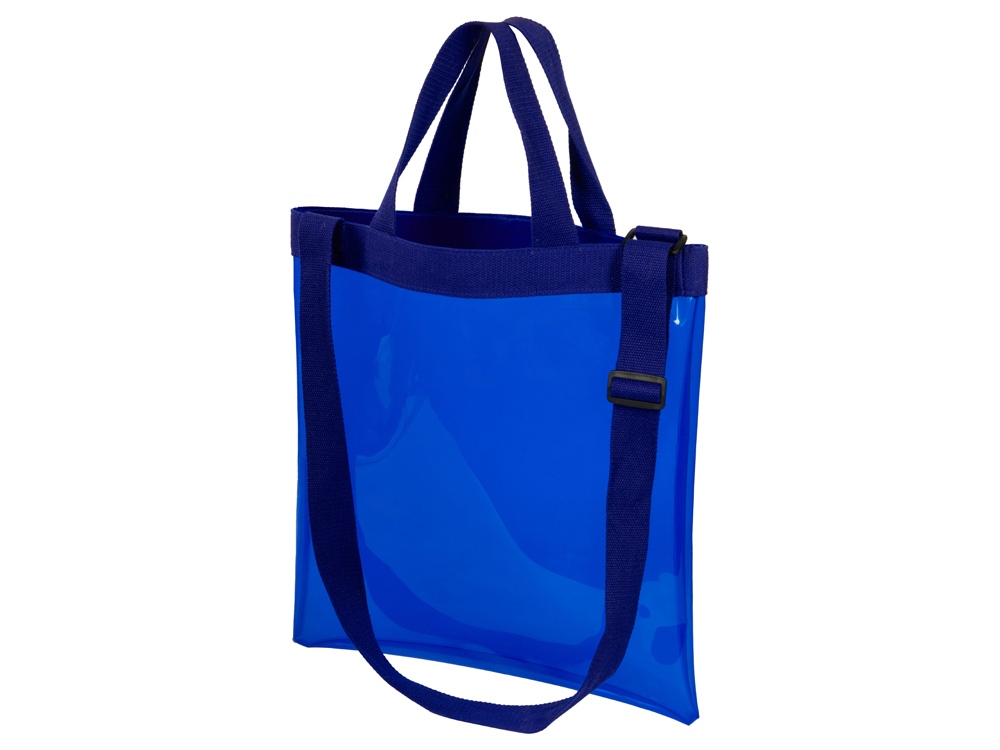 Легкая и вместительная сумка из прозрачного пластика с длинной лямкой из парусины, регулирующейcя по длине, незаменима для шоппинга или путешетсвий. Для большего удобства у сумки есть 2 короткие ручки.