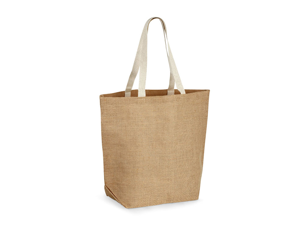 Джутовая сумка для покупок (360 г/м2) , ламинированная внутри, с ручками длиной 60 см.