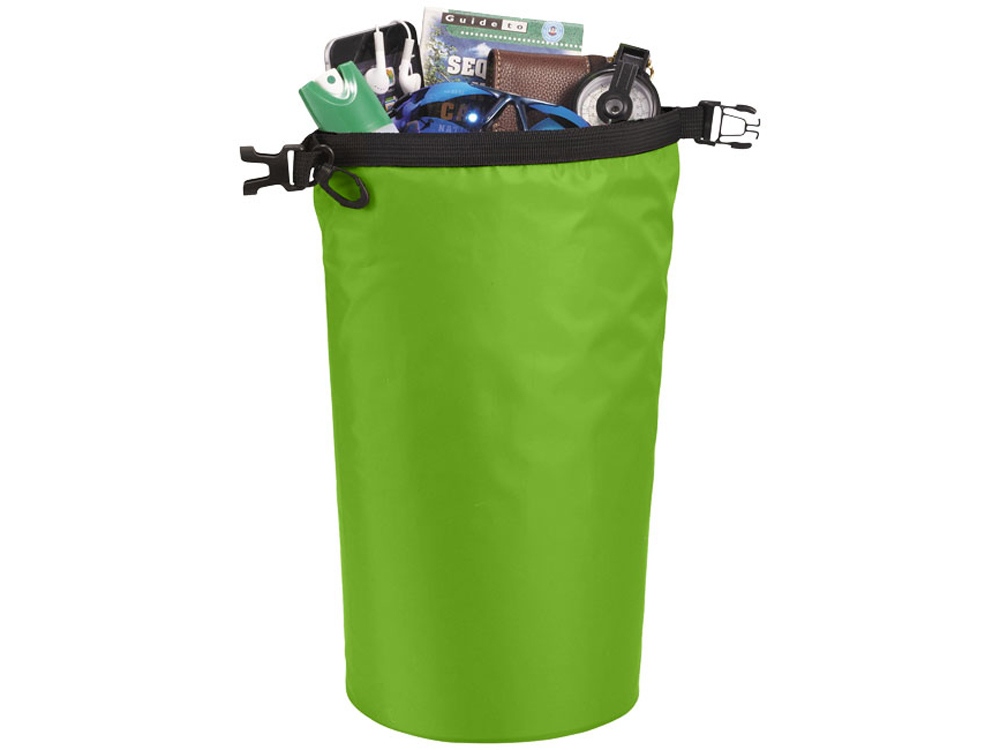 Походный 10-литровый водонепроницаемый мешок. Водонепроницаемая сумка отлично подходит для отдыха на открытом воздухе. Благодаря крышке с пластмассовой пряжкой ваши вещи не промокнут и будут в безопасности. Можно легко прикрепить к сумке или ремню. При скатывании и сгибании емкость содержимого составляет 10 литра. Полиэстер 190T.
