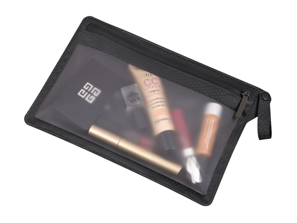 Благодаря герметичности швов и молнии влага не попадает внутрь, что позволит сохранить косметические средства, например, пудру, сухими. А если внутри косметички откроется флакон с той или иной жидкостью — содержимое вашей сумки тоже останется сухим, защищенное косметичкой.