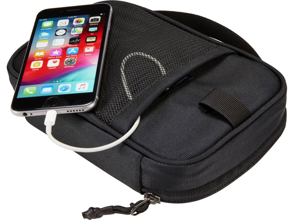 Сумка для аксессуаров, в которой можно хранить портативные зарядные устройства, наушники, зарядные кабели или другие электронные аксессуары. Поставляется с 5 эластичными петлями и двумя карманами на молнии. Накладной карман и канал для шнура позволяют подключать портативное зарядное устройство к ноутбуку или планшету, не вынимая его из сумки.