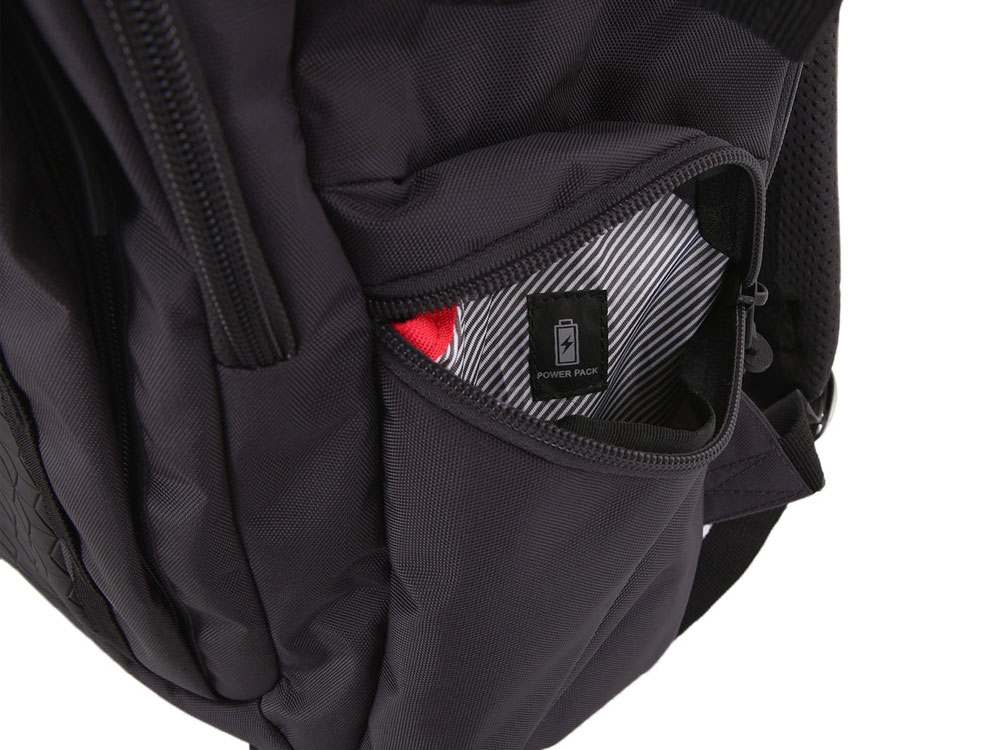 • Отделение для аккумулятора Power bank: Боковой карман на молнии предназначен для хранения внешнего аккумулятора Power bank.