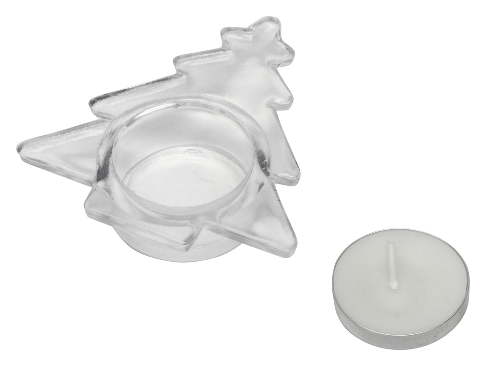 Подсвечник в виде новогодней елочки. Подходит для стандартных свечей - таблеток. Одна свеча в комплекте.