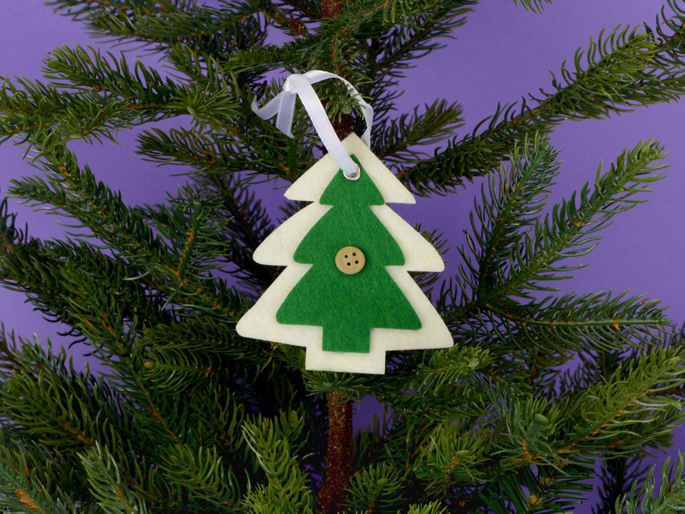 Яркая новогодняя подвеска из фетра в виде главного новогоднего дерева, можно использовать в качестве елочной игрушки. На обороте есть застежка-липучка, может легко зафиксировать украшение на фетре и других жестких или полужестких поверхностях.