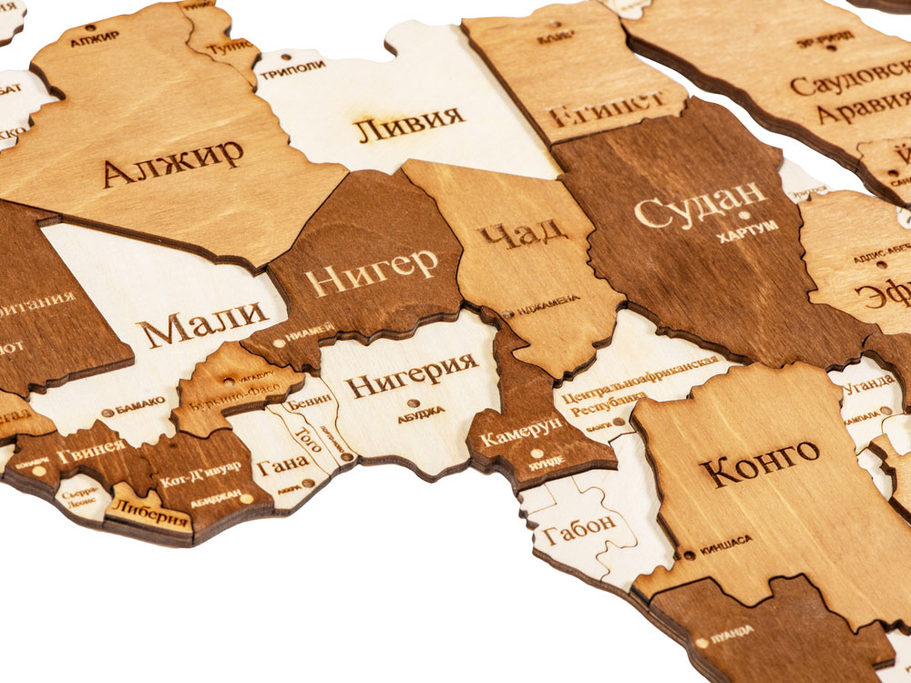 Настенная сборная карта мира из березовой фанеры — прекрасное украшение как офиса, так и квартиры. Карта крепится на стену при помощи двустороннего скотча, который уже прикреплен с тыльной стороны каждого элемента. А еще можно оживить карту корабликами и самолетами, которые тоже идут в комплекте, устремив их к тем странам, куда вы бы хотели полететь.