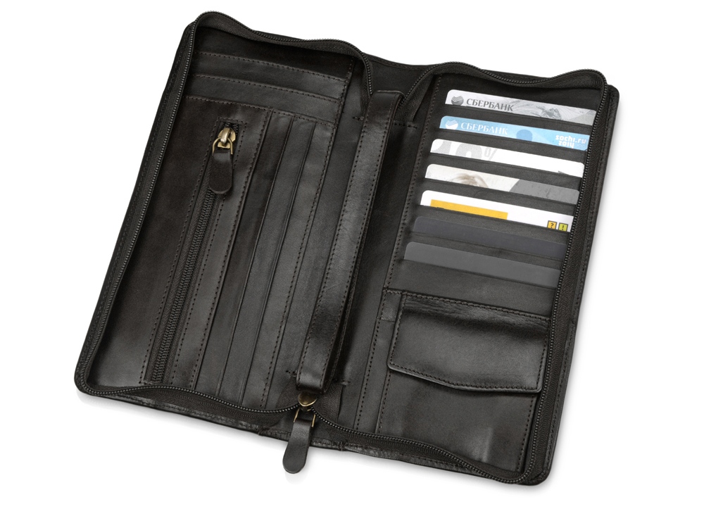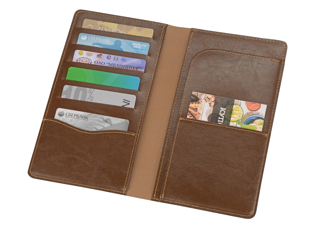 Стильное трэвел-портмоне из натуральной кожи позволить организовать хранение визитных и пластиковых карт. В портмоне предусмотрены карманы под купюры. Портмоне прекрасно подойдет для подарка женщинам и мужчинам. Два варианта расцветок.