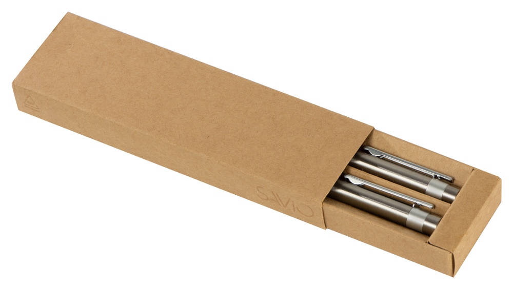 Футляр рассчитан на две ручки. Изготовлен из переработанного картона.